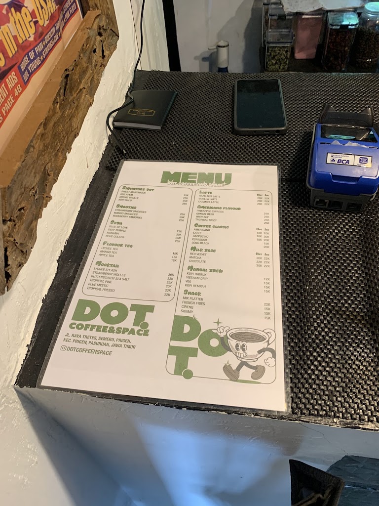 Dot. Social and Space is a Coffee shop located in Semeru, Prigen, East Java. It currently has a rating of 4.6 stars based on over 75 reviews, reflecting positive visitor experiences. The exact address is 8J3H+842, Jl. Raya Tretes, Semeru, Prigen, Kec. Prigen, Pasuruan, Jawa Timur 67157, Indonesia. For accurate navigation, use the Plus Code: [plus].