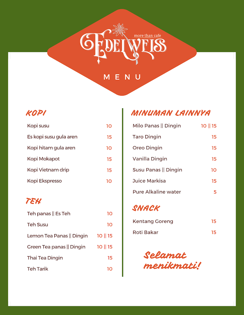 Edelweis Cafe is located at Jl. Abdul Latip, Biringere, Kec. Sinjai Utara, Kabupaten Sinjai, Sulawesi Selatan 92615, Indonesia and Jl. Abdul Latip, Biringere, Sinjai Utara, South Sulawesi, 92615, ID