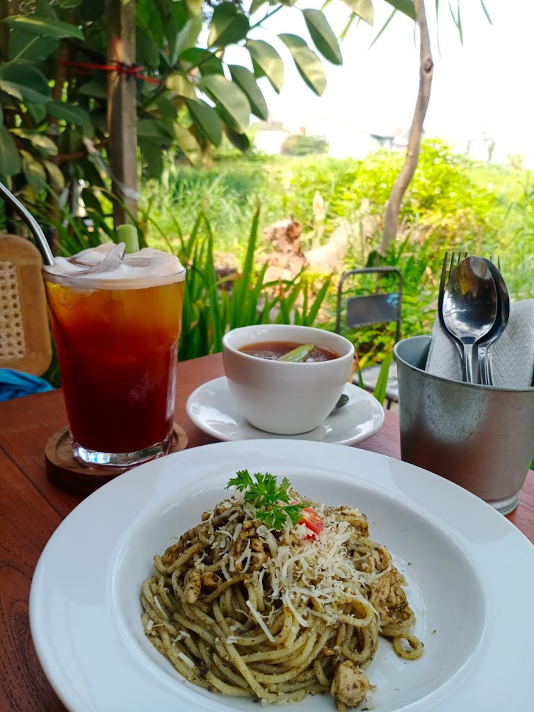 Slow living cafe, slow bar & slow kitchen. dengan menggunakan metode alat manual brew yang menyajikan menu kopi dan non kopi berkolaborasi dengan BUN PASTA AND KITCHEN mengusung konsep kedai pasta rumahan. Dengan konsep natural tropical garden. Anda dapat menikmati berbagai kopi yang di sajikan dengan berbagai alat seduh manual dari beberapa negara di dunia.