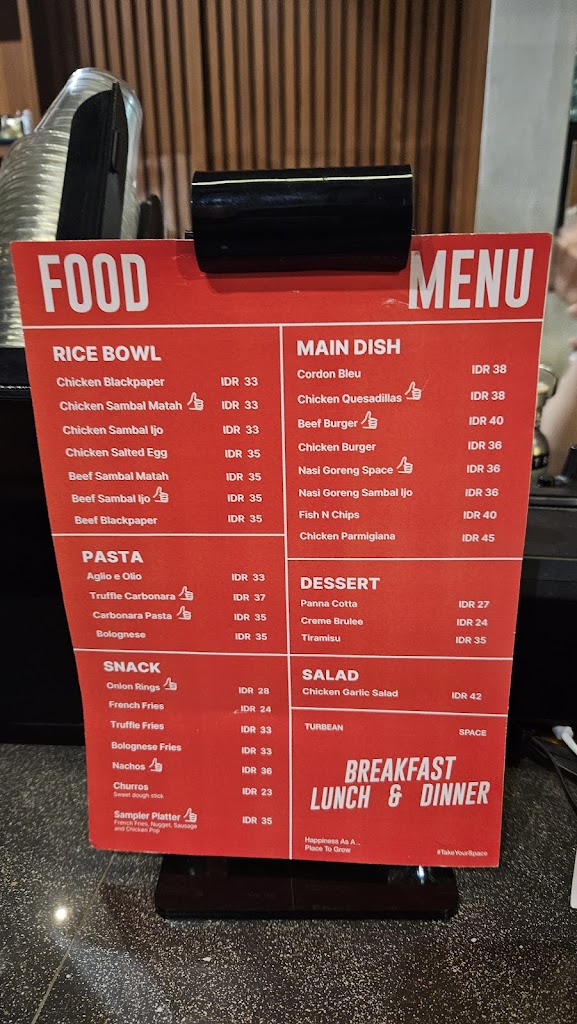 Turbean Space is a Cafe located in Ngipik, Karangpoh, Gresik, East Java. It currently has a rating of 4.6 stars based on over 271 reviews, reflecting positive visitor experiences. The exact address is Jl. Dr. Soetomo No.33, Ngipik, Karangpoh, Kec. Gresik, Kabupaten Gresik, Jawa Timur 61119, Indonesia. For accurate navigation, use the Plus Code: [plus].