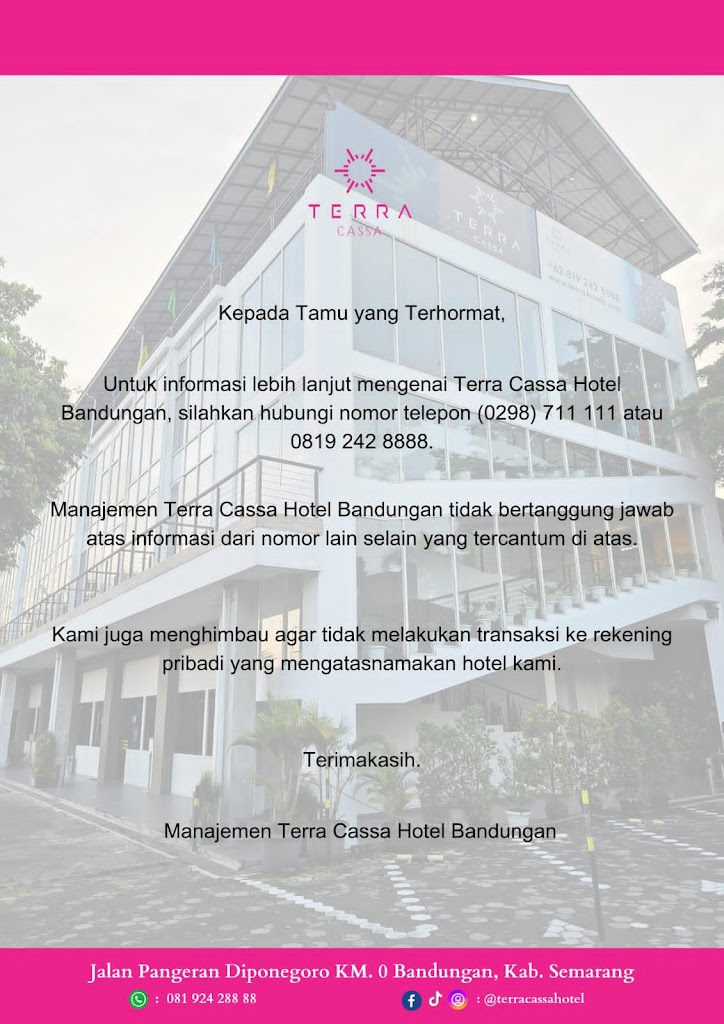 The website address for Terra Cassa Hotel Bandungan is terra-cassa.com