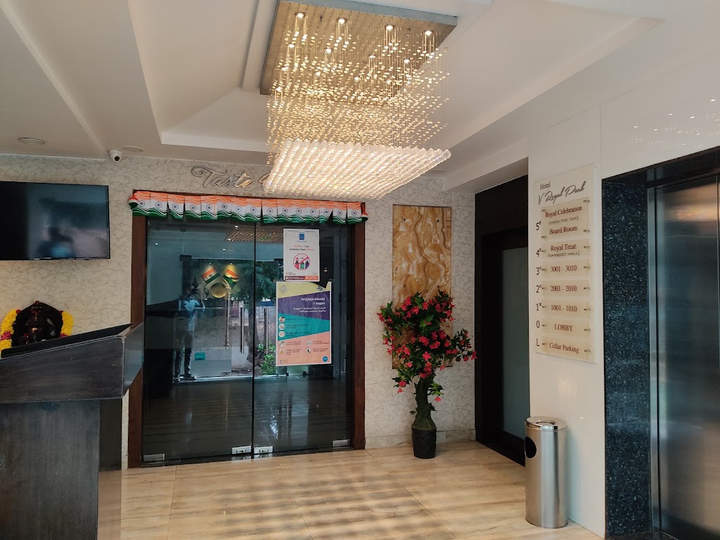 V Royal Park is a Hotel located in Arundelpet, Andhra Pradesh. It currently has a rating of 4 stars based on over 3644 reviews, reflecting positive visitor experiences. The exact address is 6-7-72 2nd Cross, 2nd Ln, Arundelpet, Guntur, Andhra Pradesh 522002. For accurate navigation, use the Plus Code: [plus].
